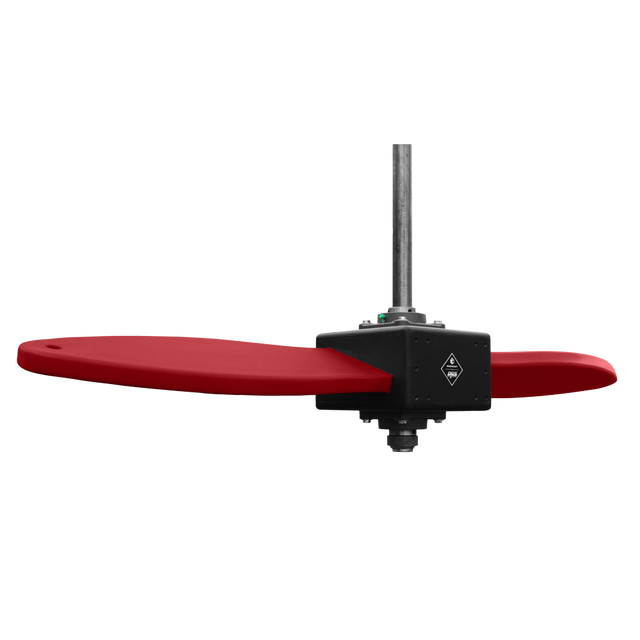 The Propeller includes a 4-foot vertical steel pipe and welded axle. For safe and stable mounting, the pipe must be secured at two points using Scaffold Clamps (sold separately), allowing the Propeller to sit horizontally and spin freely. Two pillow block bearings are included for smooth, reliable rotation. Holes at the ends of each blade allow for strap attachments to restrict movement.