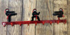 Hang this on your wall to hold you competition medals/wristbands and bandannas! These fun metal hooks are stamped from recycled steel and come in a marbled red color, decorated with 3 ninjas in different poses as shown.