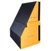 The Pop Up Parkour 2-Section Slant Wall stands 72" tall and 54" wide by 36" deep, tapering to 7-1/2" at the top. Its front walls feature black non-slip vinyl for secure footing, while the entire structure is wrapped in durable 18 oz. coated vinyl and stitched with UV-stabilized polyester thread. Assembled in two pieces, this versatile structure can function as a standard Slant Wall or be utilized as two individual parkour obstacles, offering flexibility in training configurations.